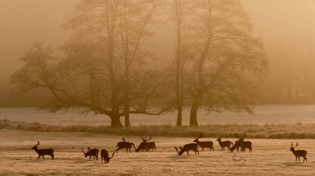Ελάφια αντικρίζουν την αυγή, στην Φρανκφούρτη της Γερμανίας